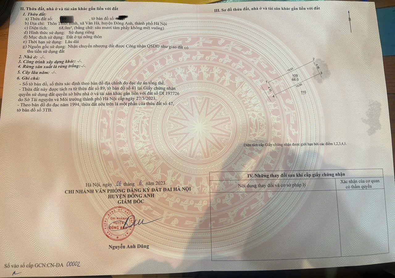 Chính chủ gửi bán 2 mảnh liền nhau tại Thiết Bình,Vân Hà,Đông Anh,Hà Nội